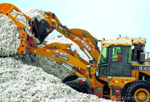 10月3日,位于阿拉尔市的新疆蓝泊湾棉业有限责任公司员工正在用机械堆放新棉。当下正是棉花采收时节,该公司棉花加工厂一派繁忙景象。王志清摄