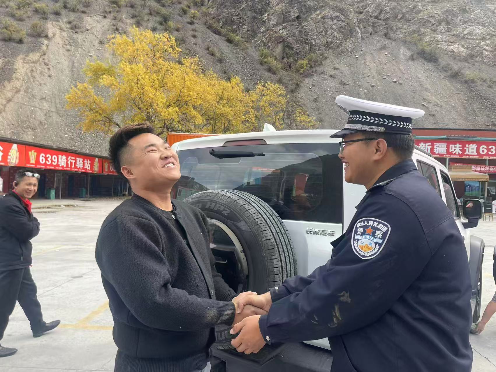9月30日18时,独库公路乔尔玛段夜色渐深,游客刘先生的车辆因轮胎被扎陷入困境,焦急之下拨通了求助电话。接到求助,马自明拎起“救援套装”冲向警车,警灯划破夜幕,仅10分钟就抵达现场。下蹲、支千斤顶、卸螺丝……他动作娴熟利落,“咔嗒”一声,备胎稳稳安装完毕。刘先生握住马自明的手连连道谢:“乌苏交警真是我们游客的‘及时雨’!”