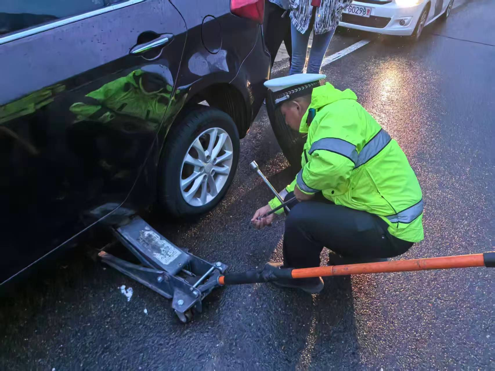 中队对辖区路段的易故障点了如指掌,每辆巡逻车都配备“车型适配工具包”,确保面对不同车辆的爆胎、故障都能“对症下药”。仅9月期间,中队就帮助游客更换轮胎、检修车辆40余次,用“分钟级响应”诠释着“游客有呼,交警有应”的服务理念。