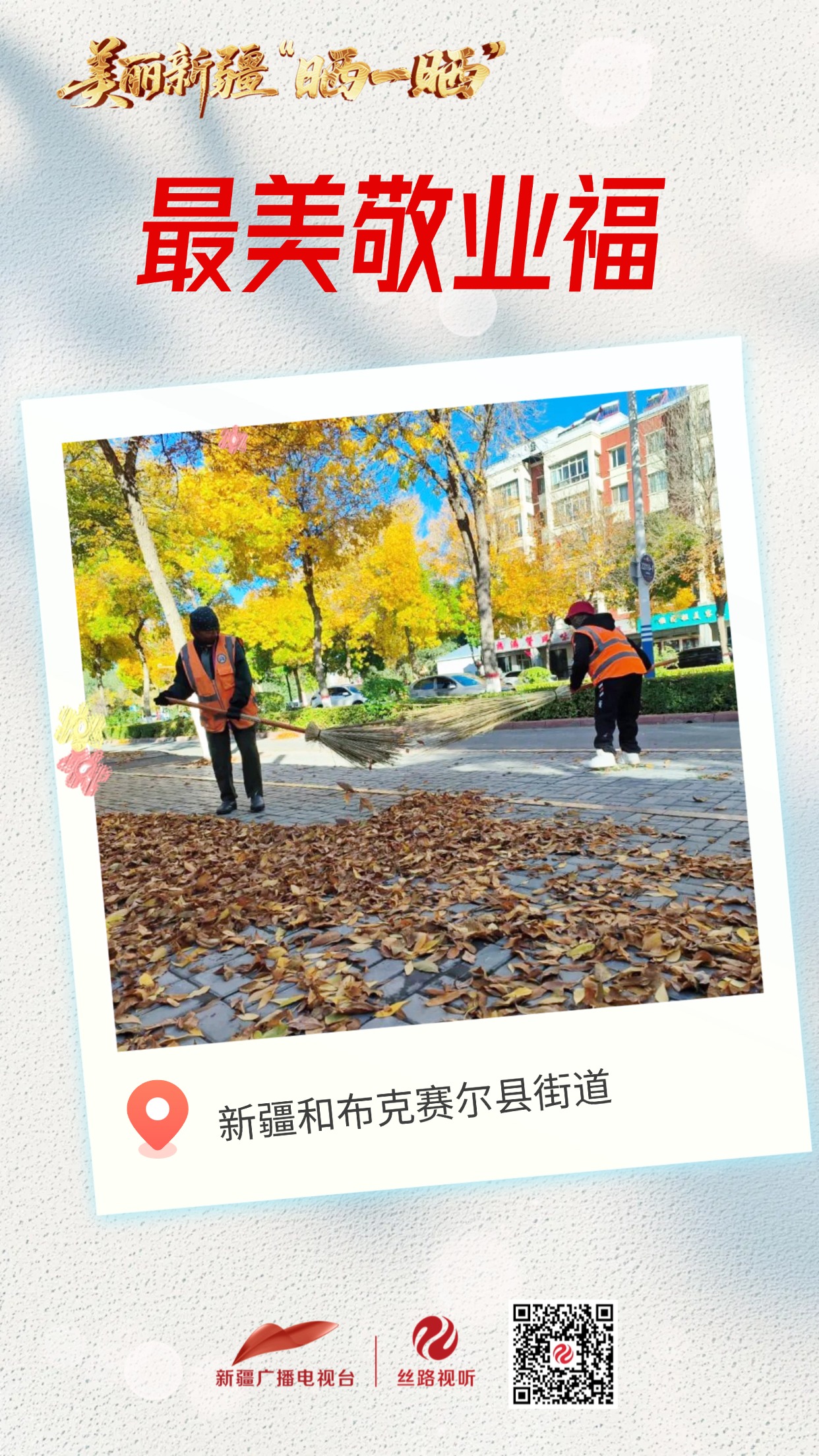街头环卫岗:在和布克赛尔县街道,环卫工人清扫落叶。扫帚划过路面的声响里,环卫工人俯身捡拾垃圾,让城市在节庆中保持洁净容颜。