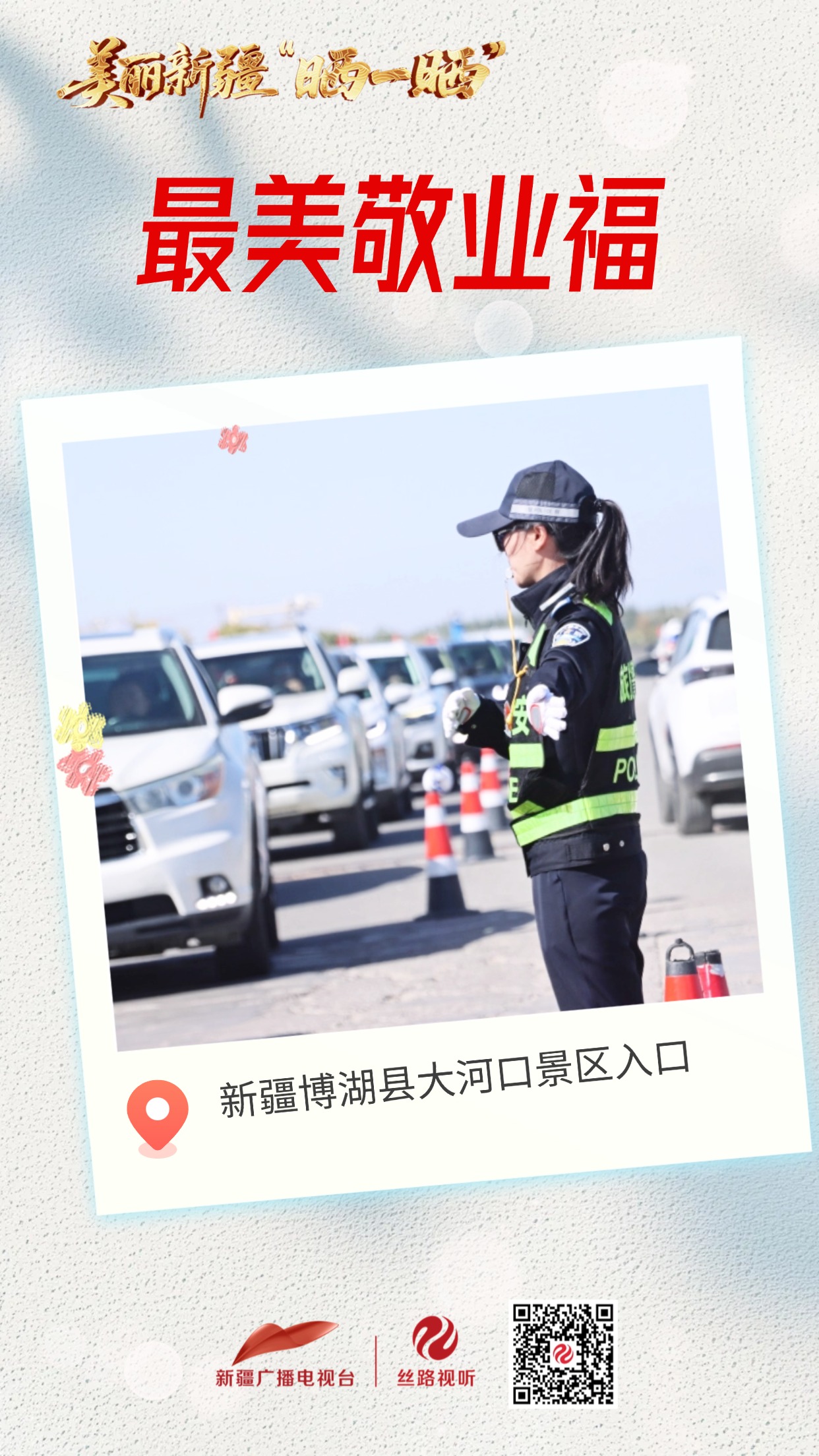 路口指挥台:博湖县公安局辅警在大河口景区入口处疏导交通。