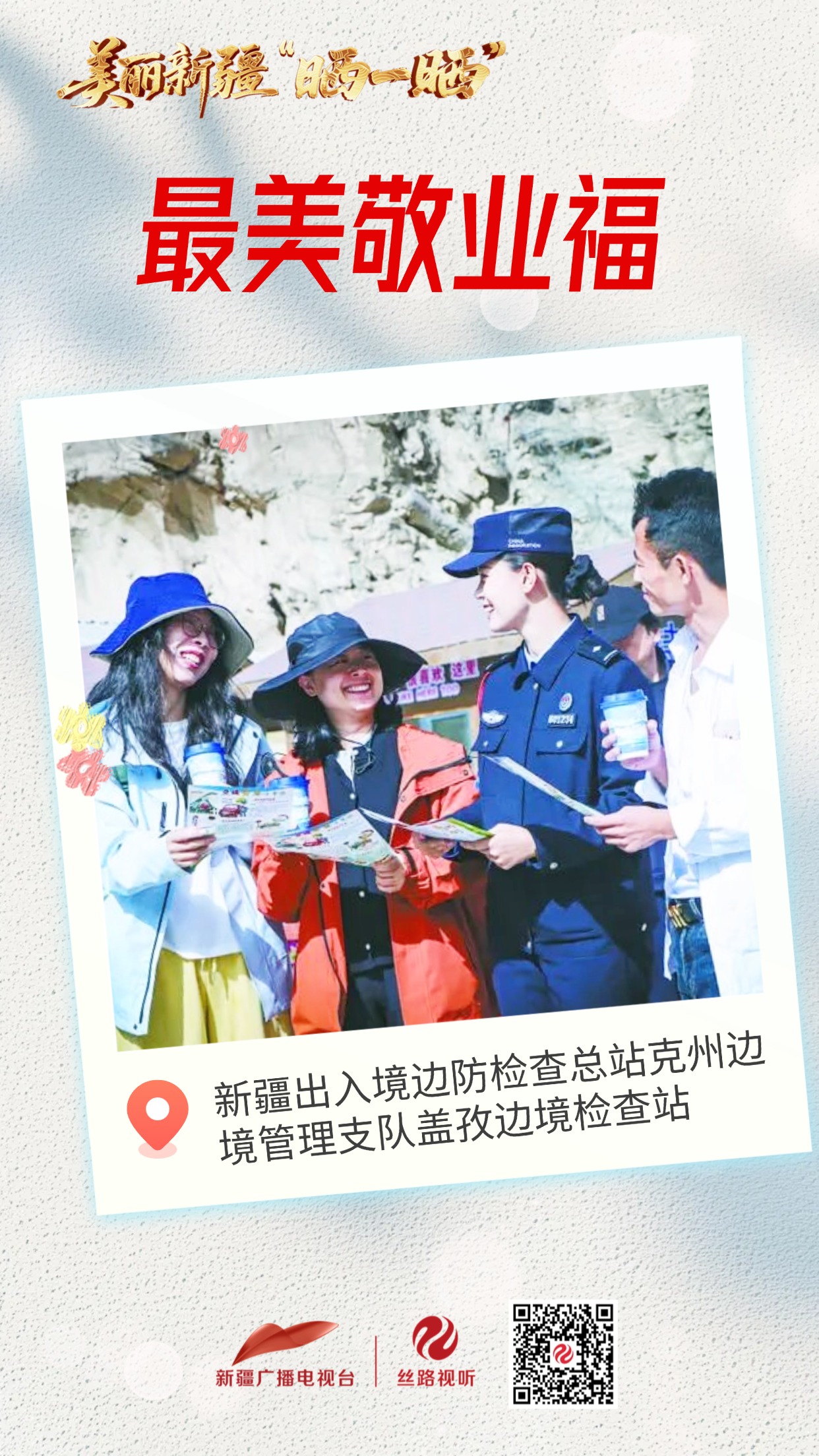 边境国门处:新疆出入境边防检查总站克州边境管理支队盖孜边境检查站民警向过往游客讲解安防知识。