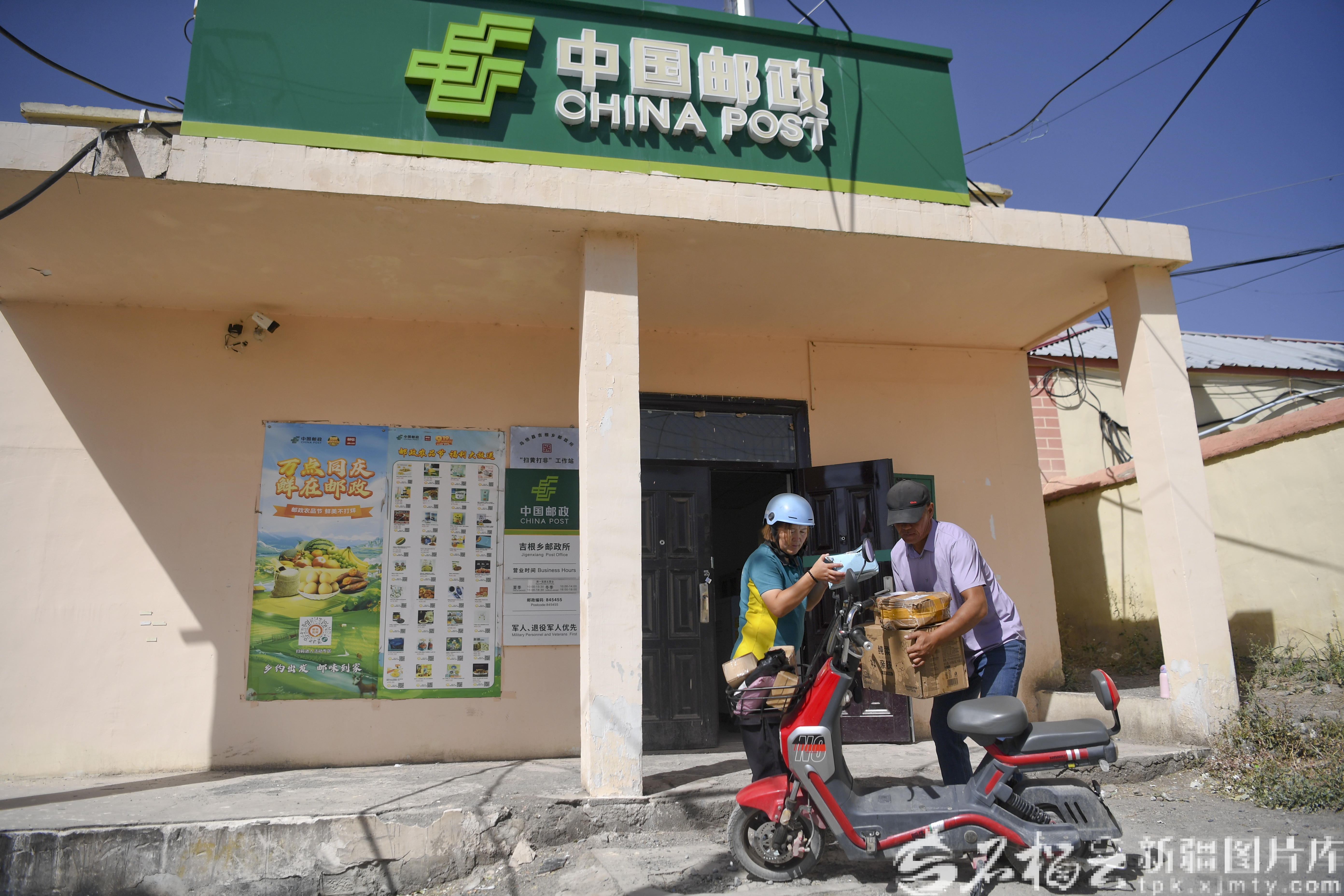 9月13日,乌恰县吉根乡邮政所投递员伊热斯比·图尔迪马买提和丈夫在装载快递。天山网-新疆日报记者 汤永摄
