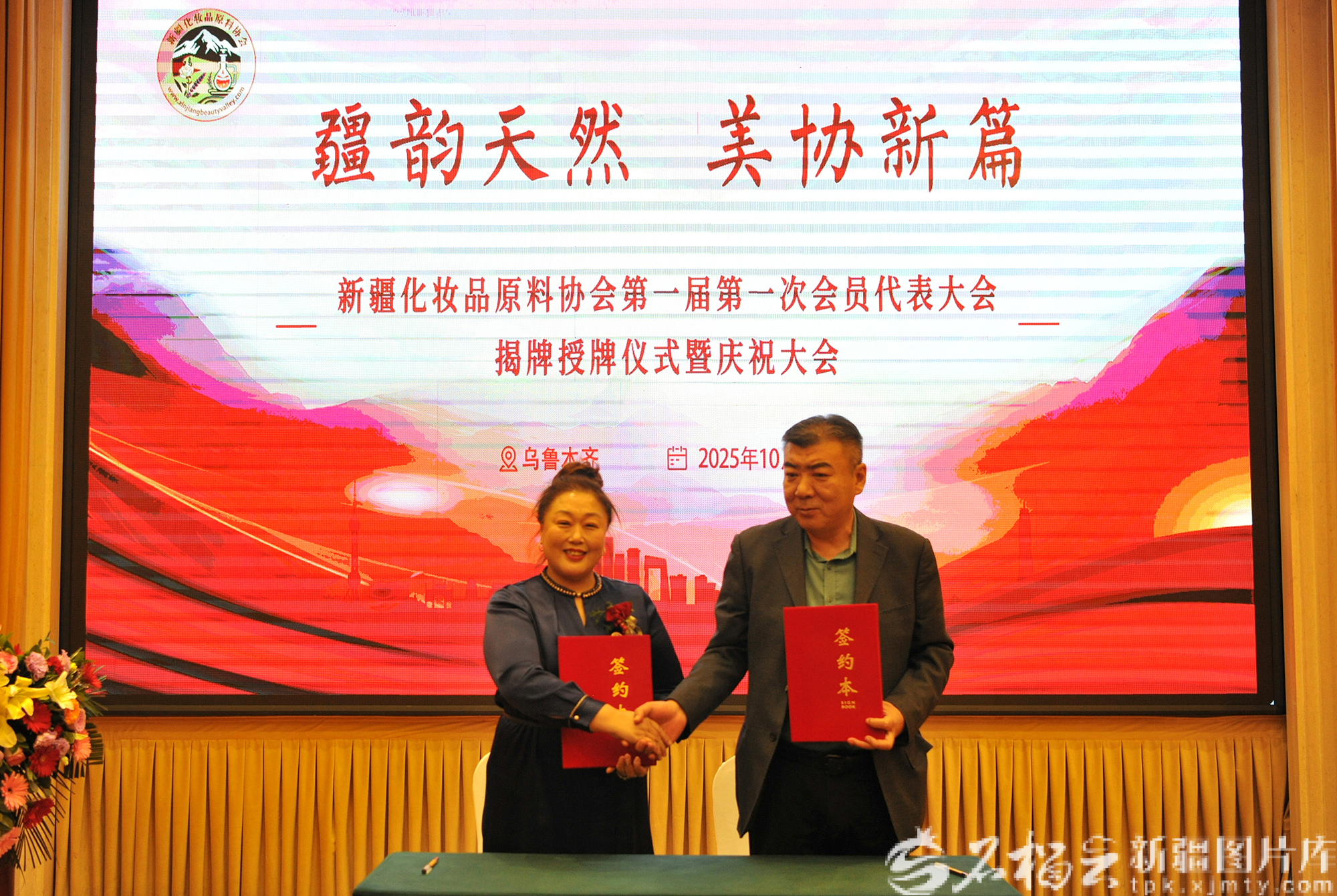 10月10日,新疆化妆品原料协会与新疆美容化妆品行业协会签约。天山网-新疆日报记者 秦梅花摄