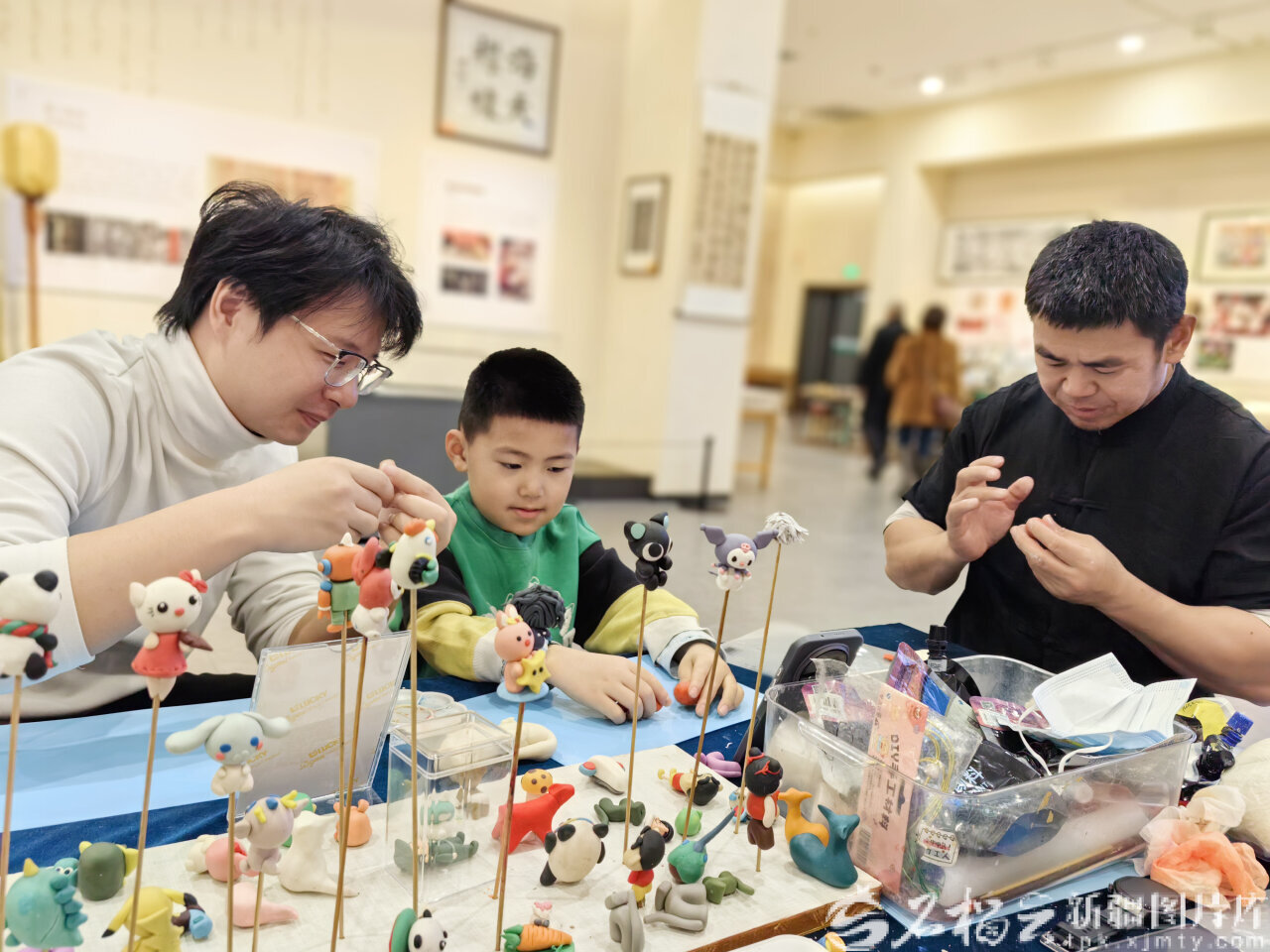 12月1日,在乌鲁木齐市博物馆,参观者在学习面塑制作。