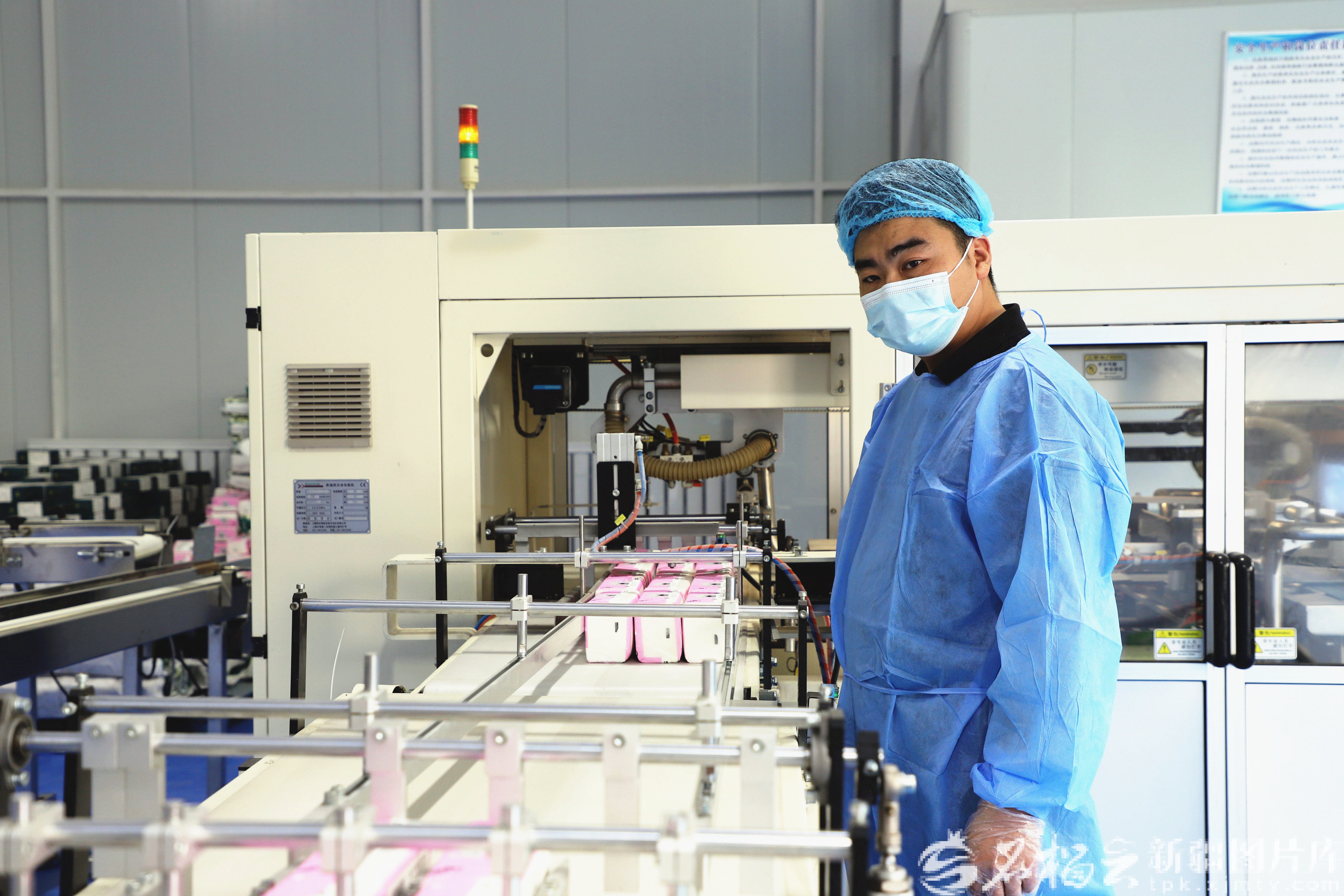 1月5日,阿合奇县色帕巴依乡阿果依村杏源纸品加工厂在生产包装抽纸。古丽加马力·艾萨摄