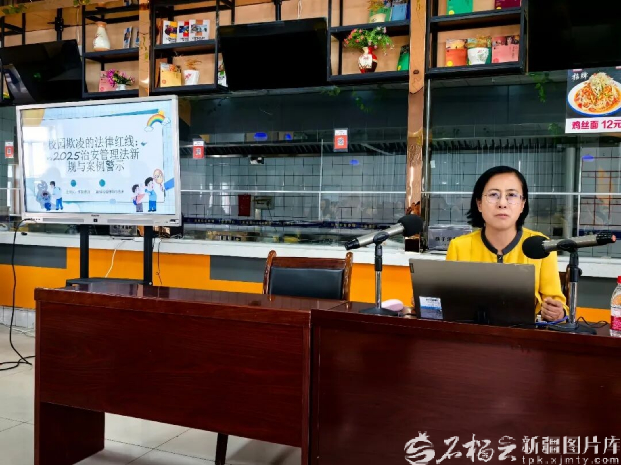 任耘在校园向师生们宣讲治安管理法规。张旭辉摄