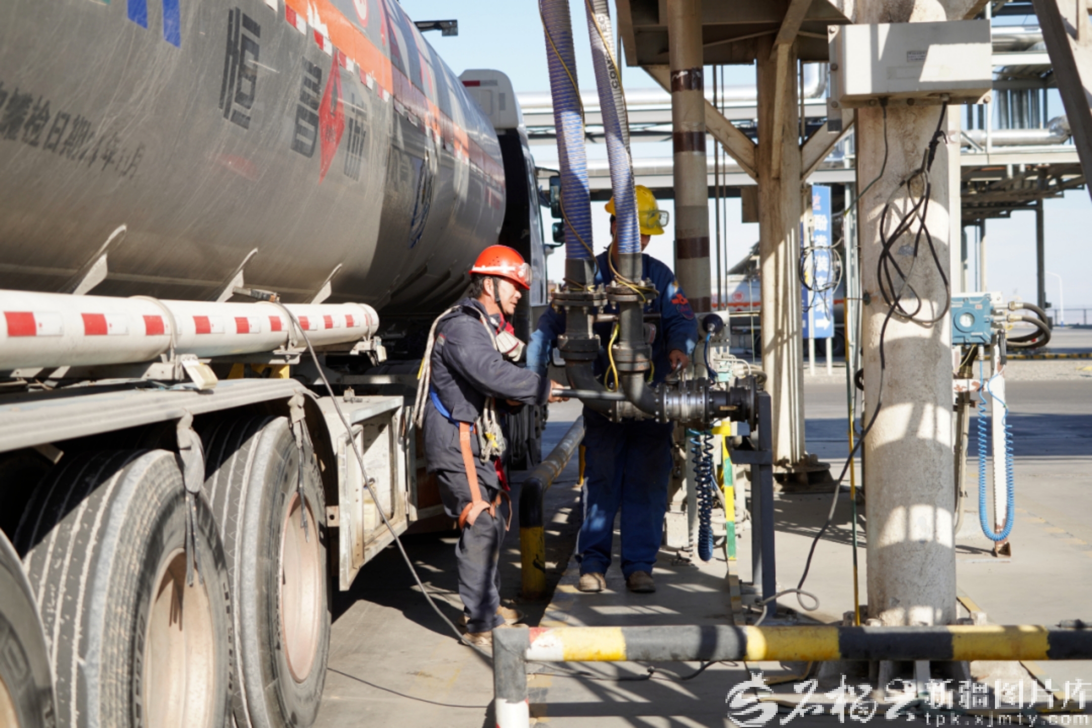 1月19日,新疆广汇新能源有限公司工作人员在进行产品装车准备工作。高志华摄