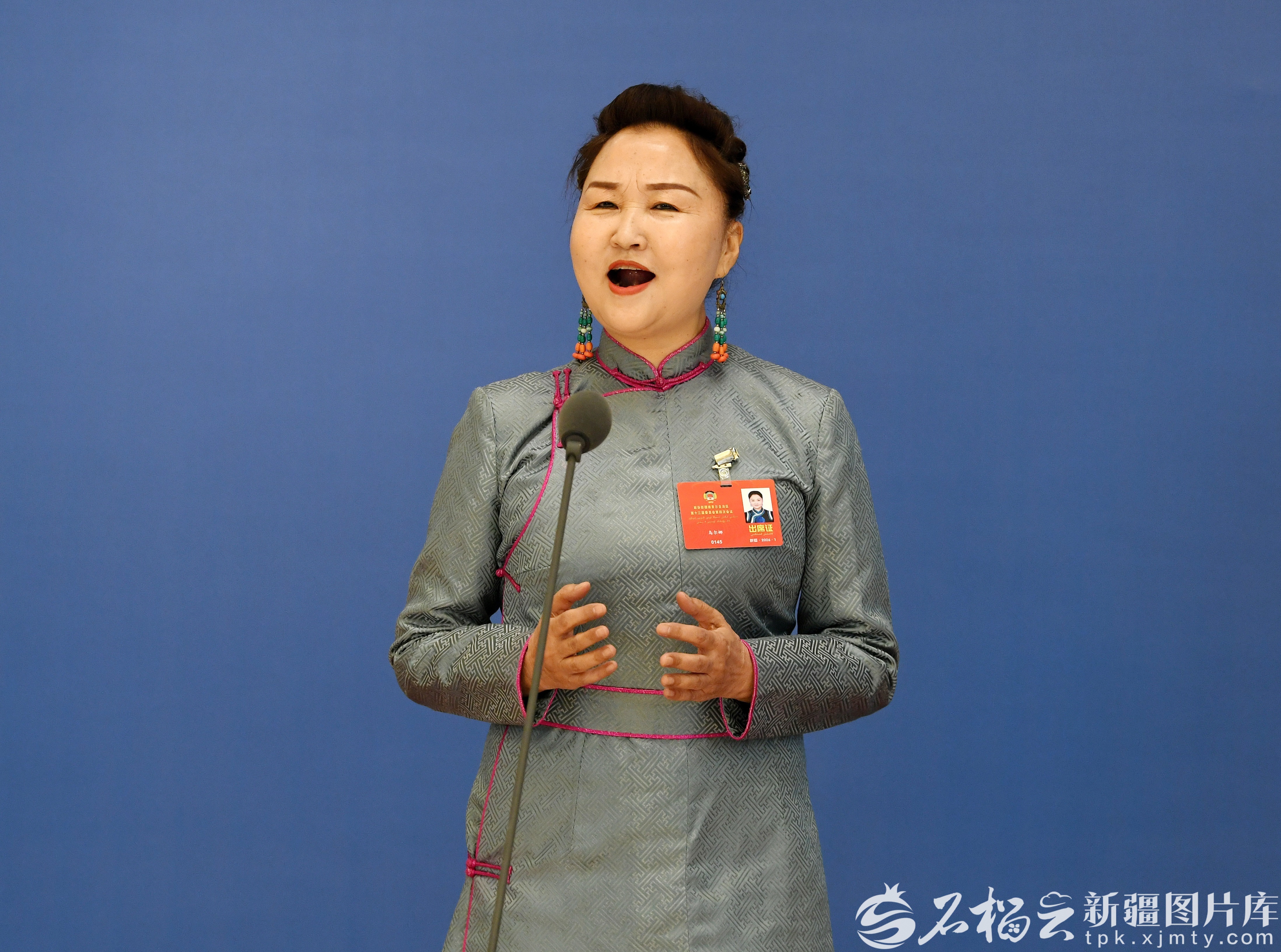 乌尔娜委员答记者问。石榴云/新疆日报记者约提克尔·尼加提摄