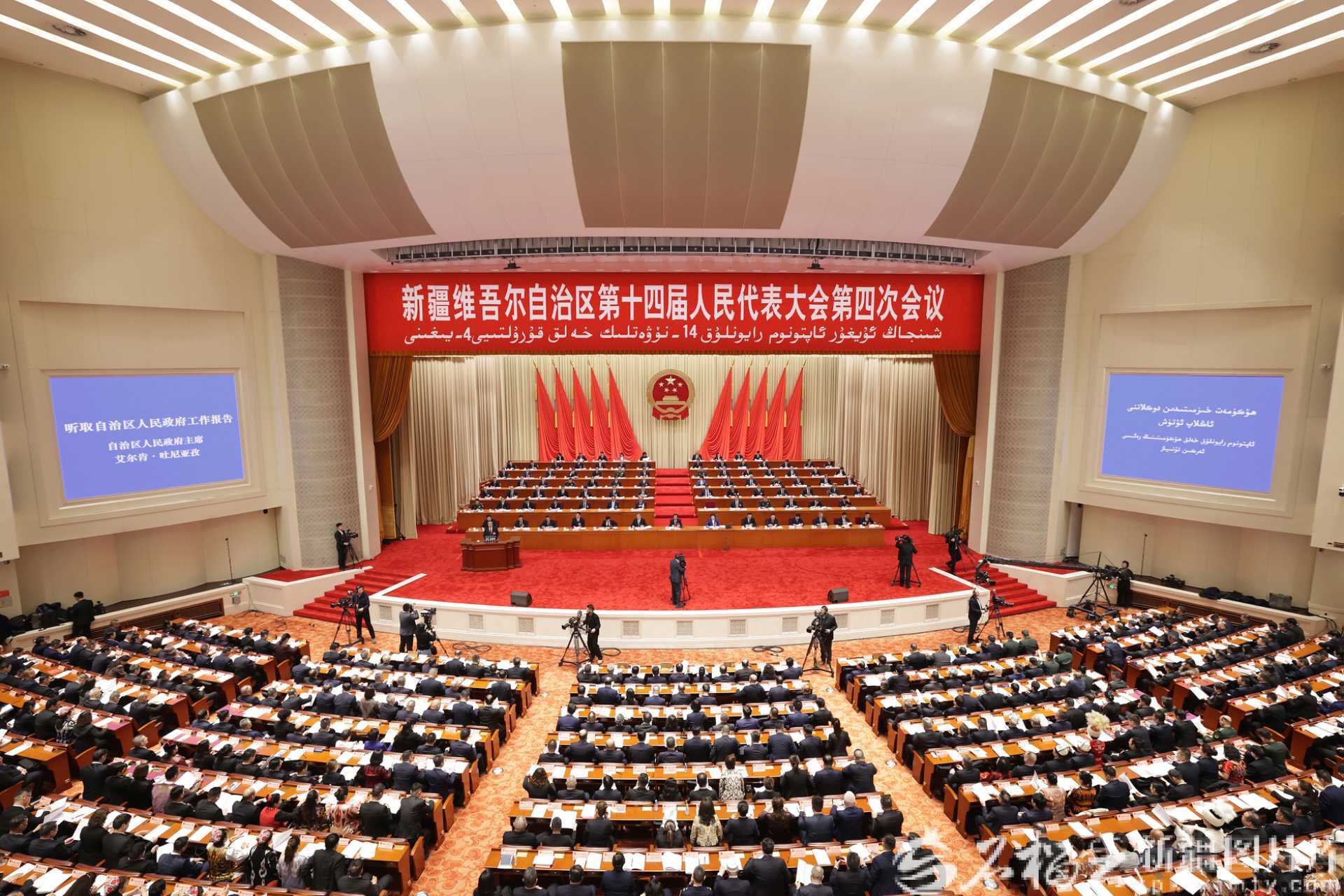1月27日,自治区十四届人大四次会议在新疆人民会堂开幕。图为会议现场。天山网-新疆日报记者 崔志坚摄