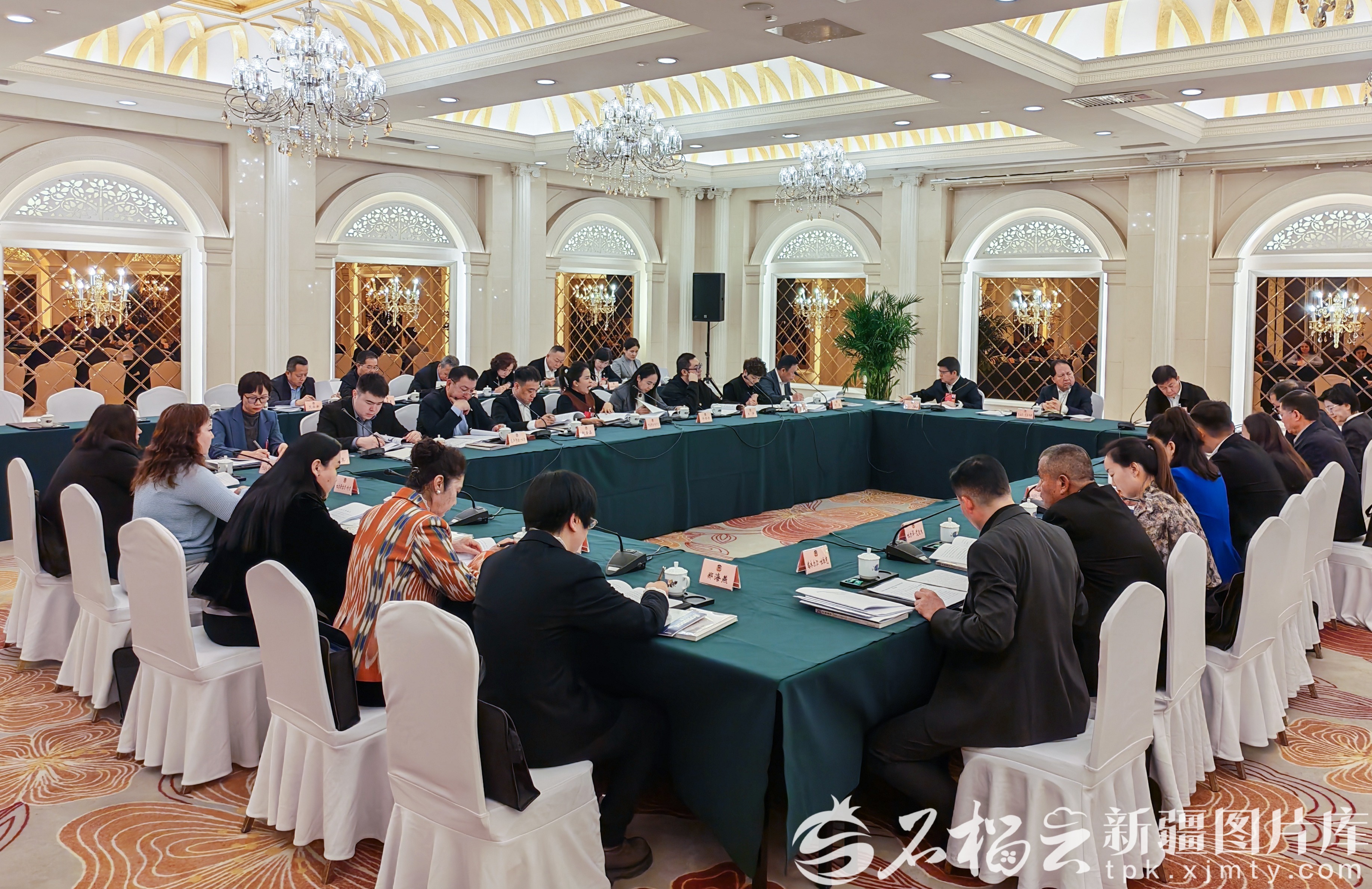 1月27日,经济界、工商联界委员分组讨论政府工作报告、自治区“十五五”规划纲要草案、计划草案报告和预算草案报告。图为会议现场。石榴云/新疆日报记者 约提克尔·尼加提摄