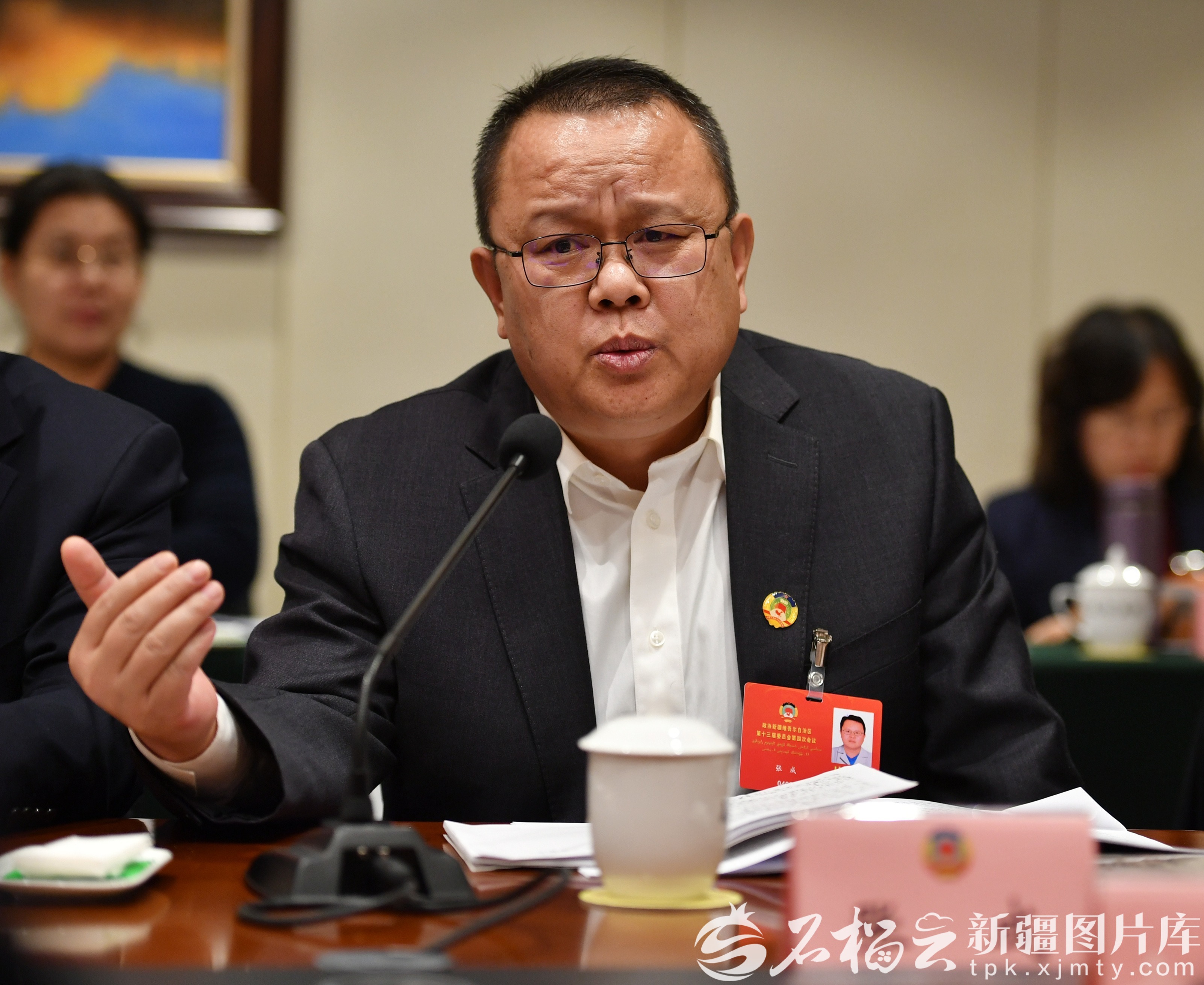 1月27日,医药卫生界、体育界、社会福利和社会保障界委员分组讨论政府工作报告、自治区“十五五”规划纲要草案、计划草案报告和预算草案报告时,张成委员围绕兵地医保互认互通等内容发言。石榴云/新疆日报记者 邹懿摄