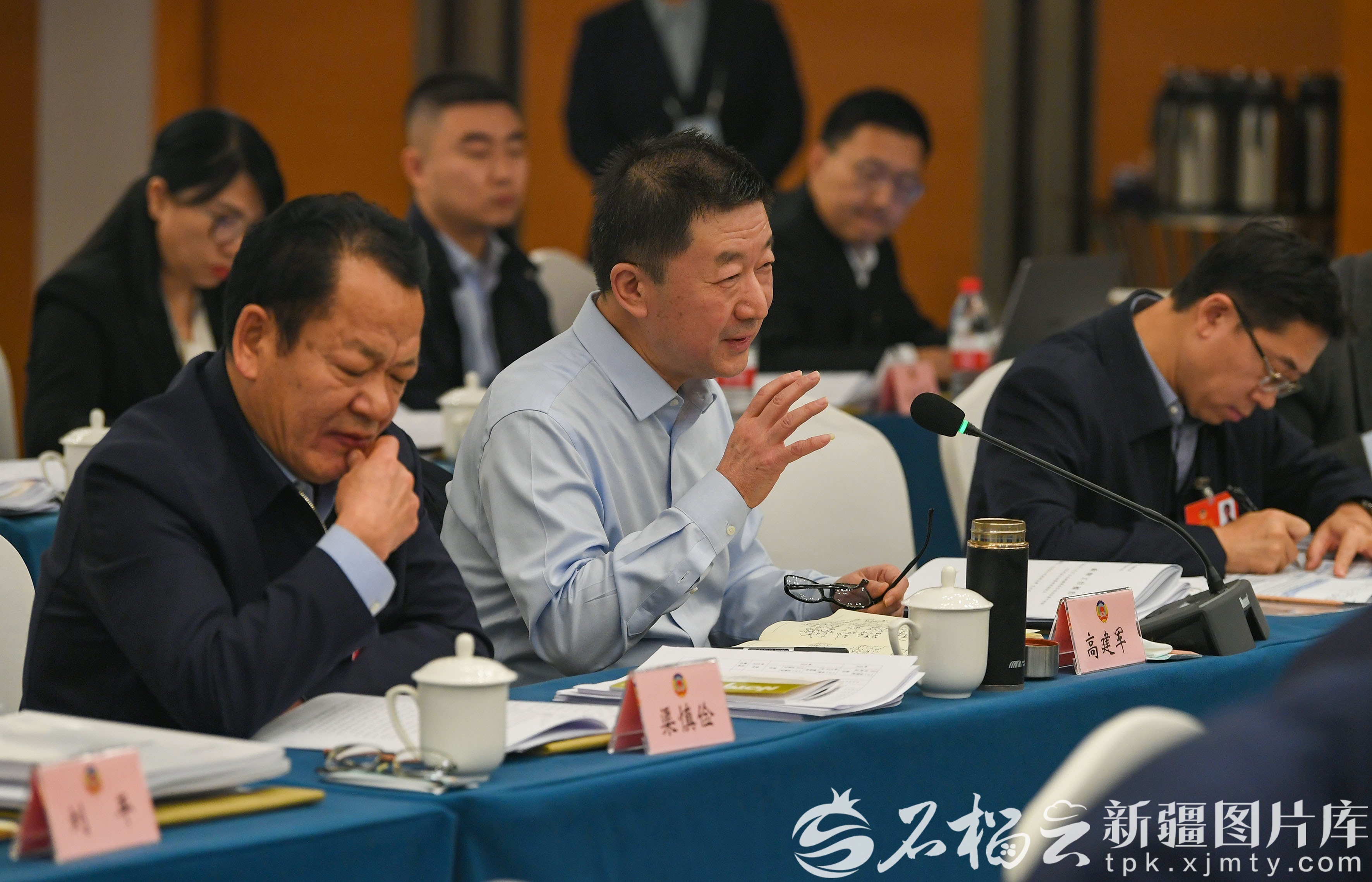 1月27日,经济界、工商联界委员分组讨论政府工作报告、自治区“十五五”规划纲要草案、计划草案报告和预算草案报告时,经济界高建军委员(中)围绕推动新疆农业科技高质量发展等内容发言。石榴云/新疆日报记者 约提克尔·尼加提摄