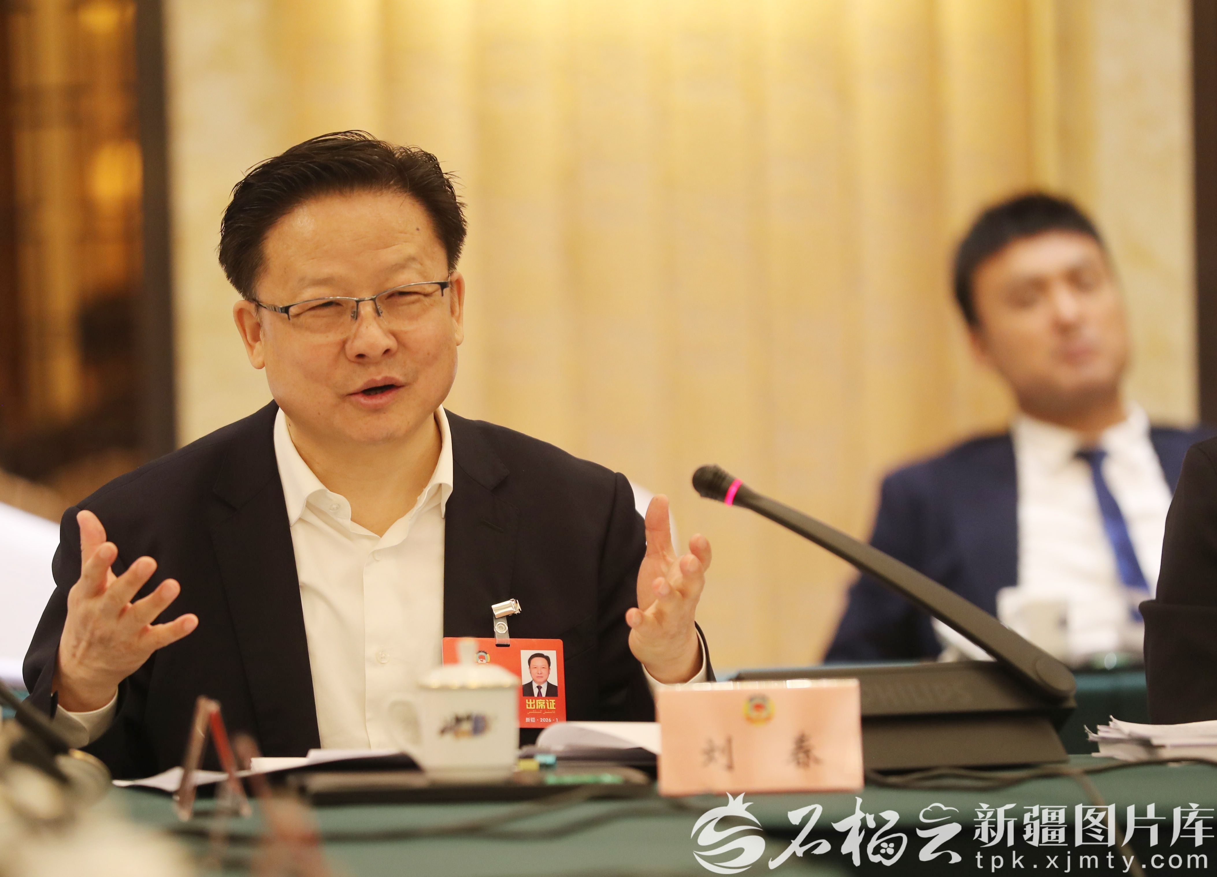 1月27日下午,文化艺术界、新闻出版界委员分组讨论政府工作报告、自治区“十五五”规划纲要草案、计划草案报告和预算草案报告。刘春委员围绕昆仑文化的挖掘与展示提出相关建议。 石榴云/新疆日报记者 李雄心摄