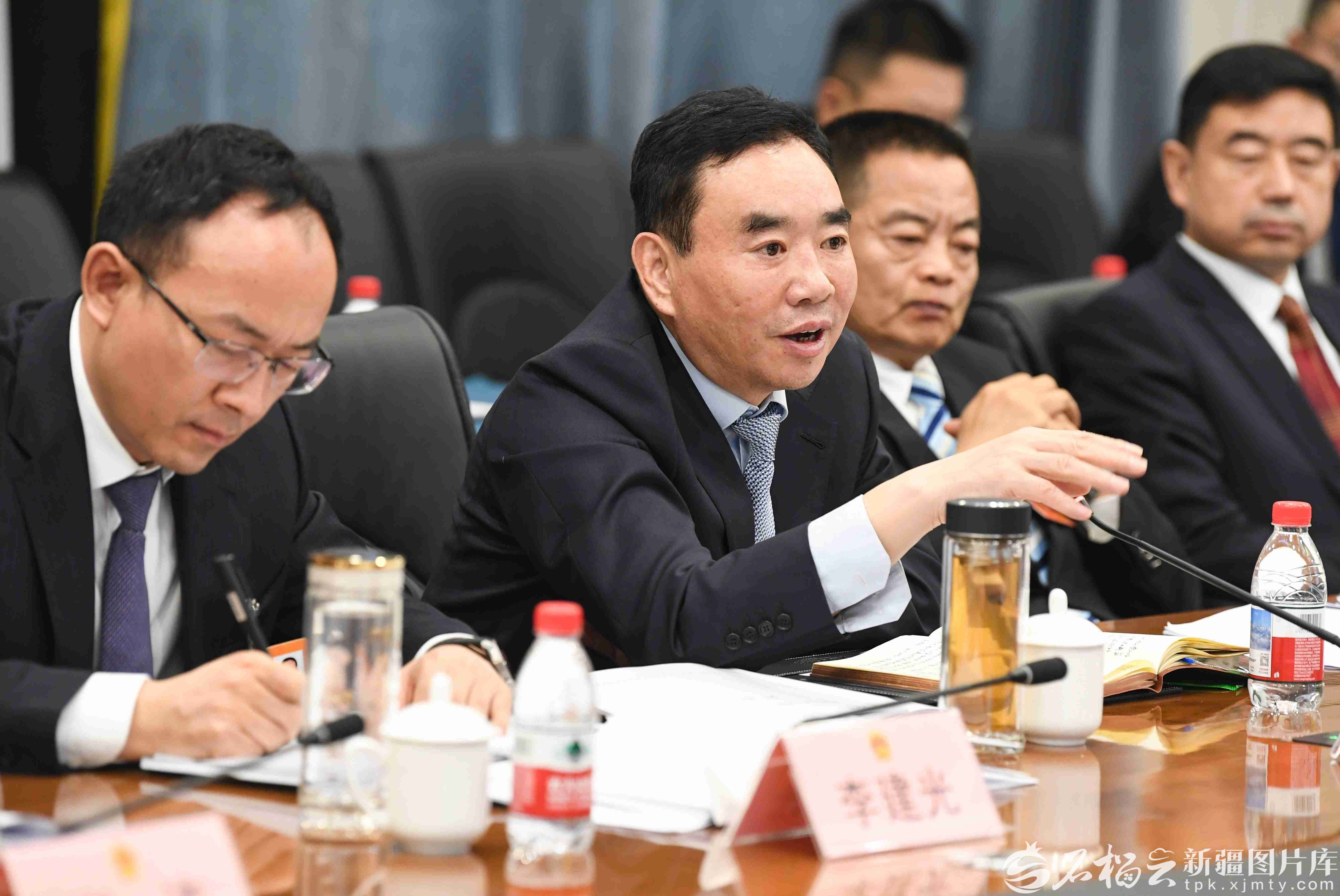 1月28日,李长修代表(左二)在参加克拉玛依市代表团审议时,就加快培育壮大新质生产力等内容发言。天山网-新疆日报记者 汤永摄