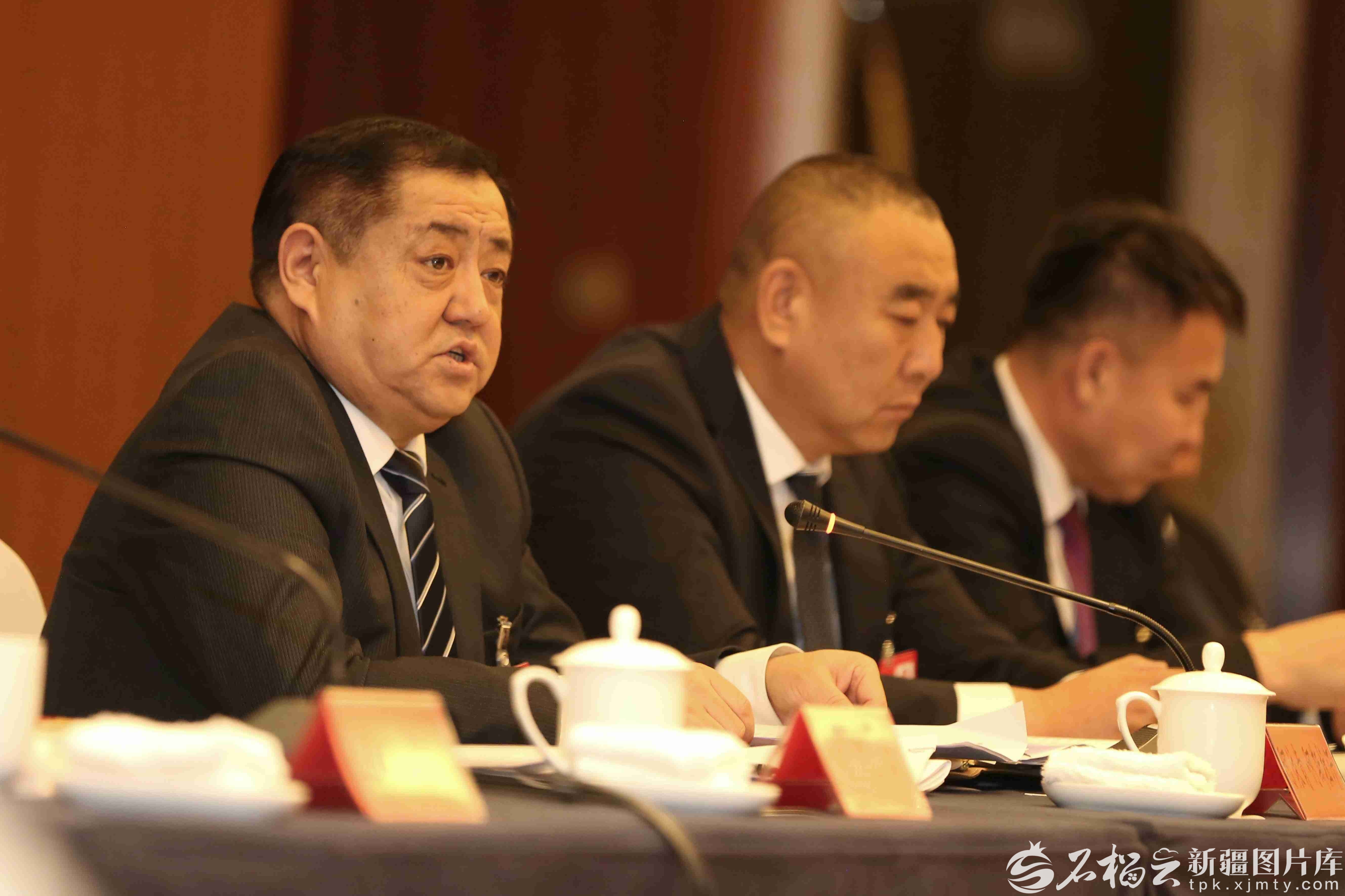 1月28日,哈尔肯·哈布德克里木代表在参加塔城地区代表团审议时,就强化生态环境执法检查与天山北坡经济带大气污染治理发言。天山网-新疆日报记者 蔡增乐摄