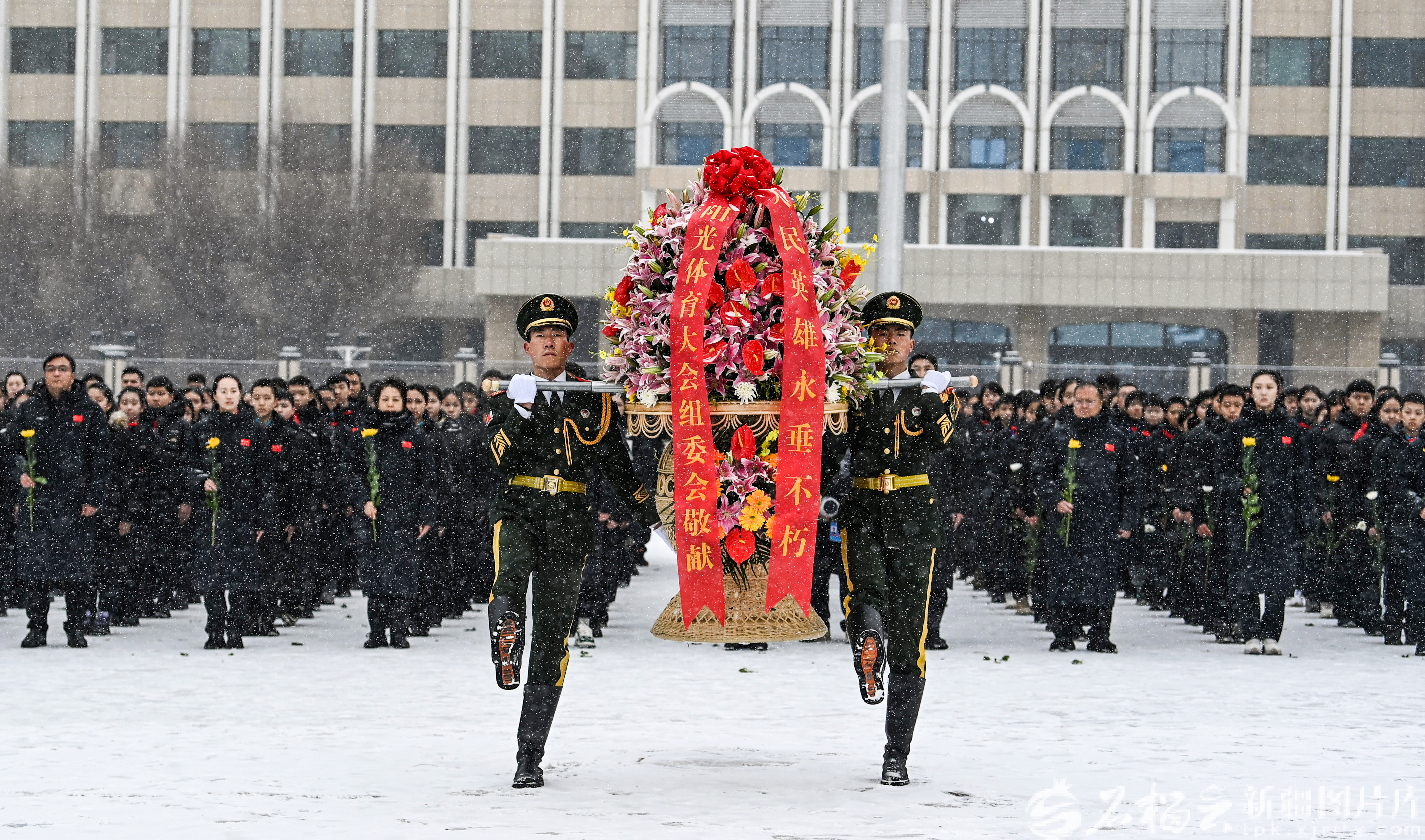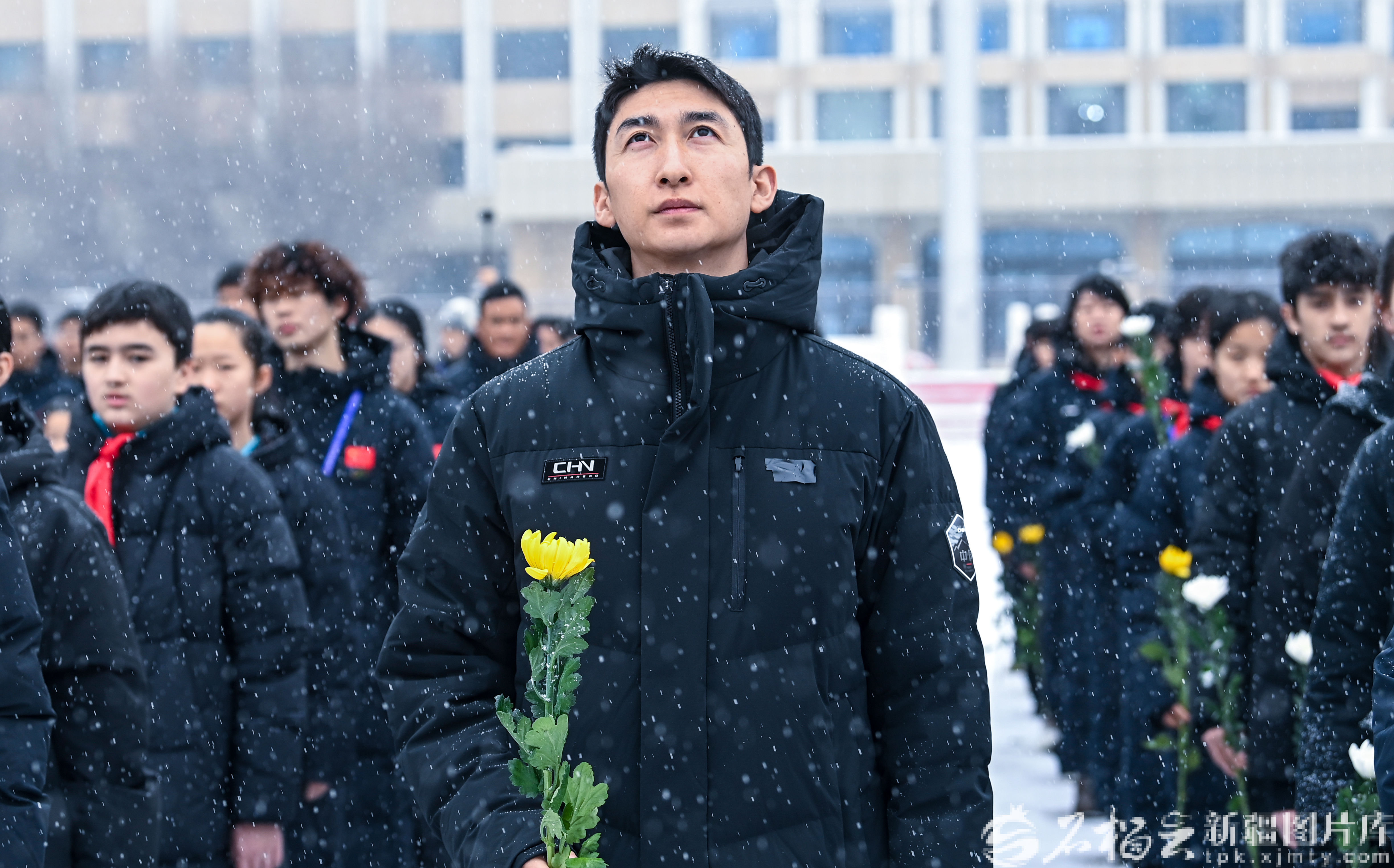 1月29日,来自全国34个代表团的优秀运动员代表、教练员,与本地少先队员共230余人齐聚中国人民解放军进军新疆纪念碑前,以敬献花篮的方式,缅怀革命先烈、传承红色基因。
