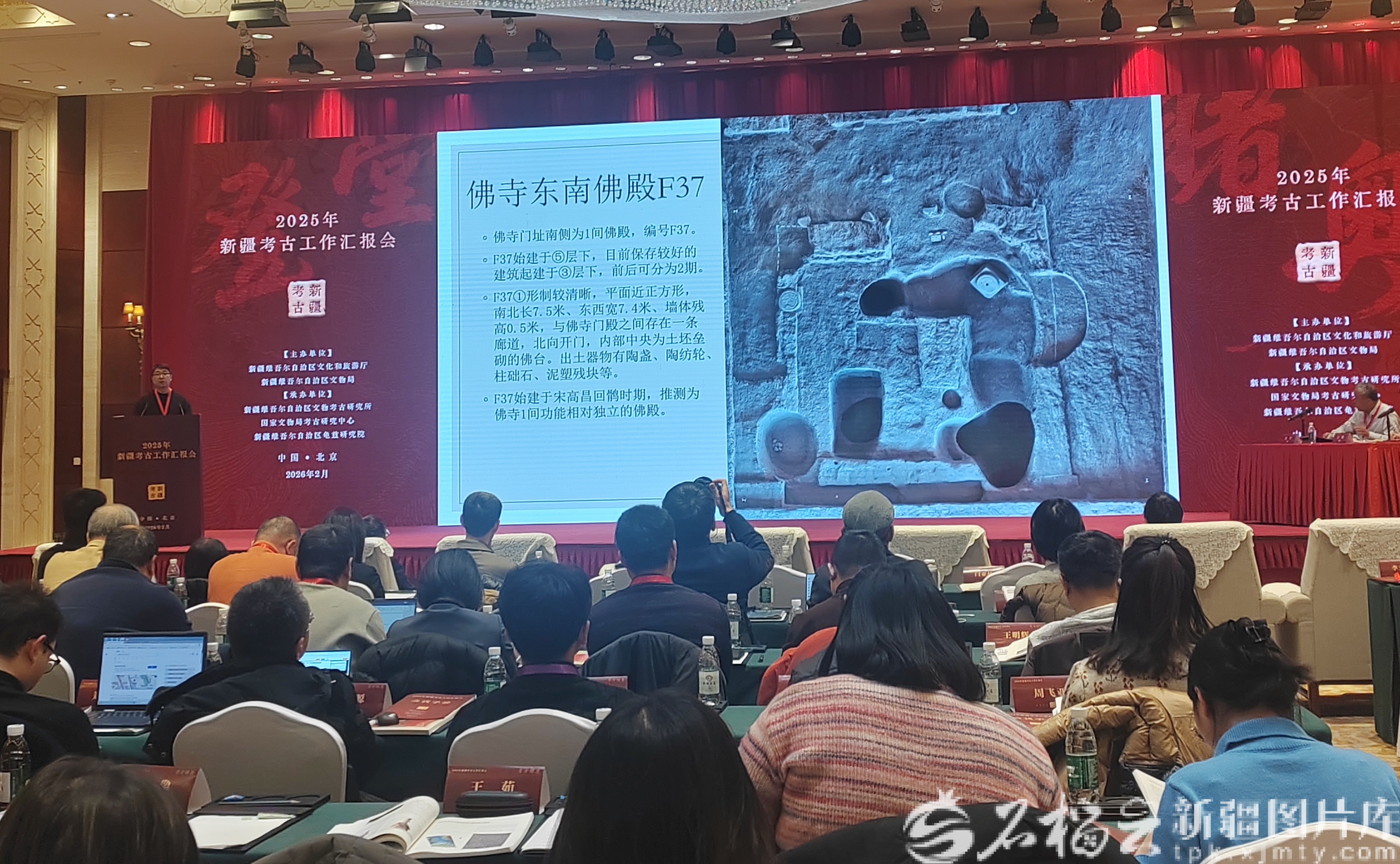 任冠在2025年新疆考古工作汇报会上,介绍过去一年唐朝墩古城遗址的考古成果。天山网-新疆日报记者 贾春霞摄