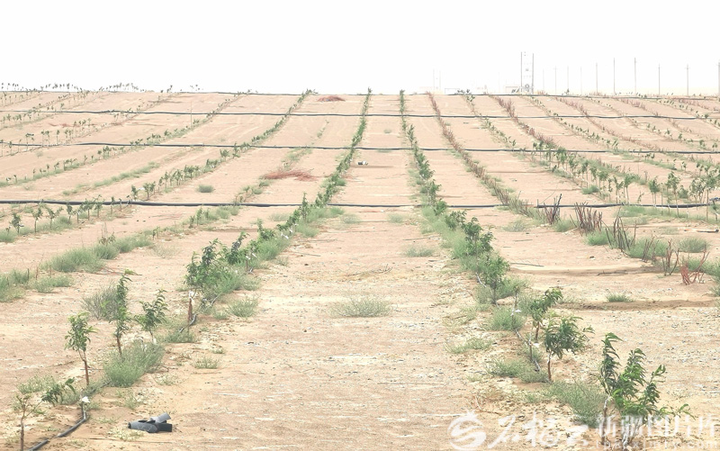 于田县阿热勒七仙女防沙治沙标杆项目区沙地里种植的成片桃树。天山网-新疆日报记者 曹华摄(资料图片)