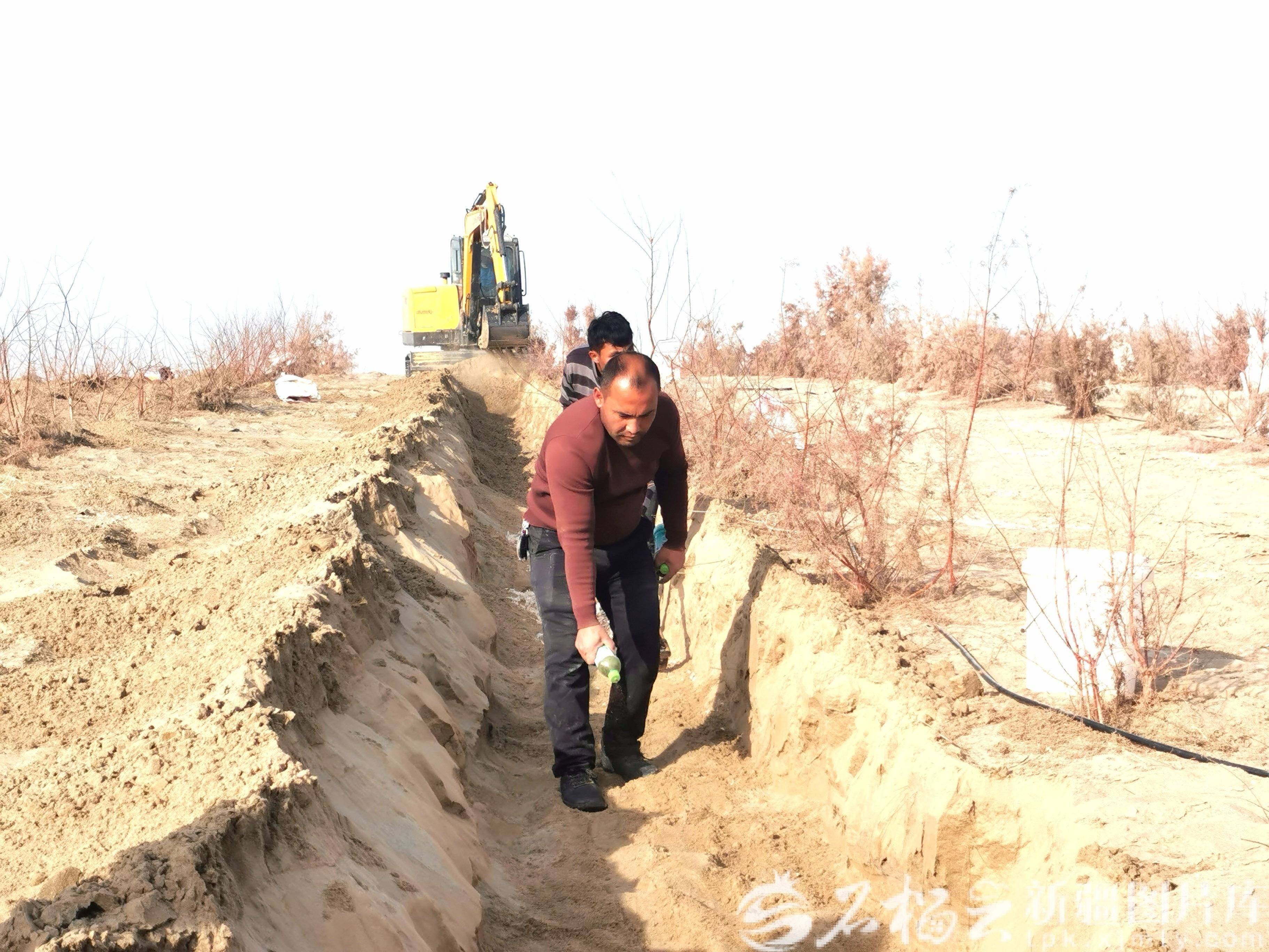 和田县英艾日克乡防风治沙点,种植户正在开沟播撒肉苁蓉种子。(资料图片)天山网-新疆日报记者 曹华摄