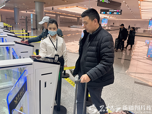 2月10日,乌鲁木齐天山机场海关关员引导出境旅客有序通行。帕尔哈提·吐尔逊摄