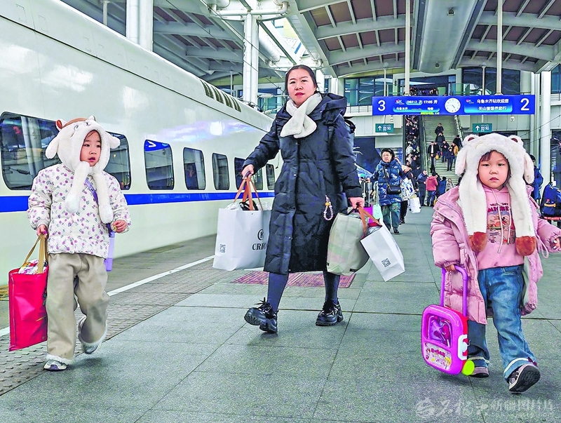2月7日,乌鲁木齐站旅客准备乘坐动车出行。
