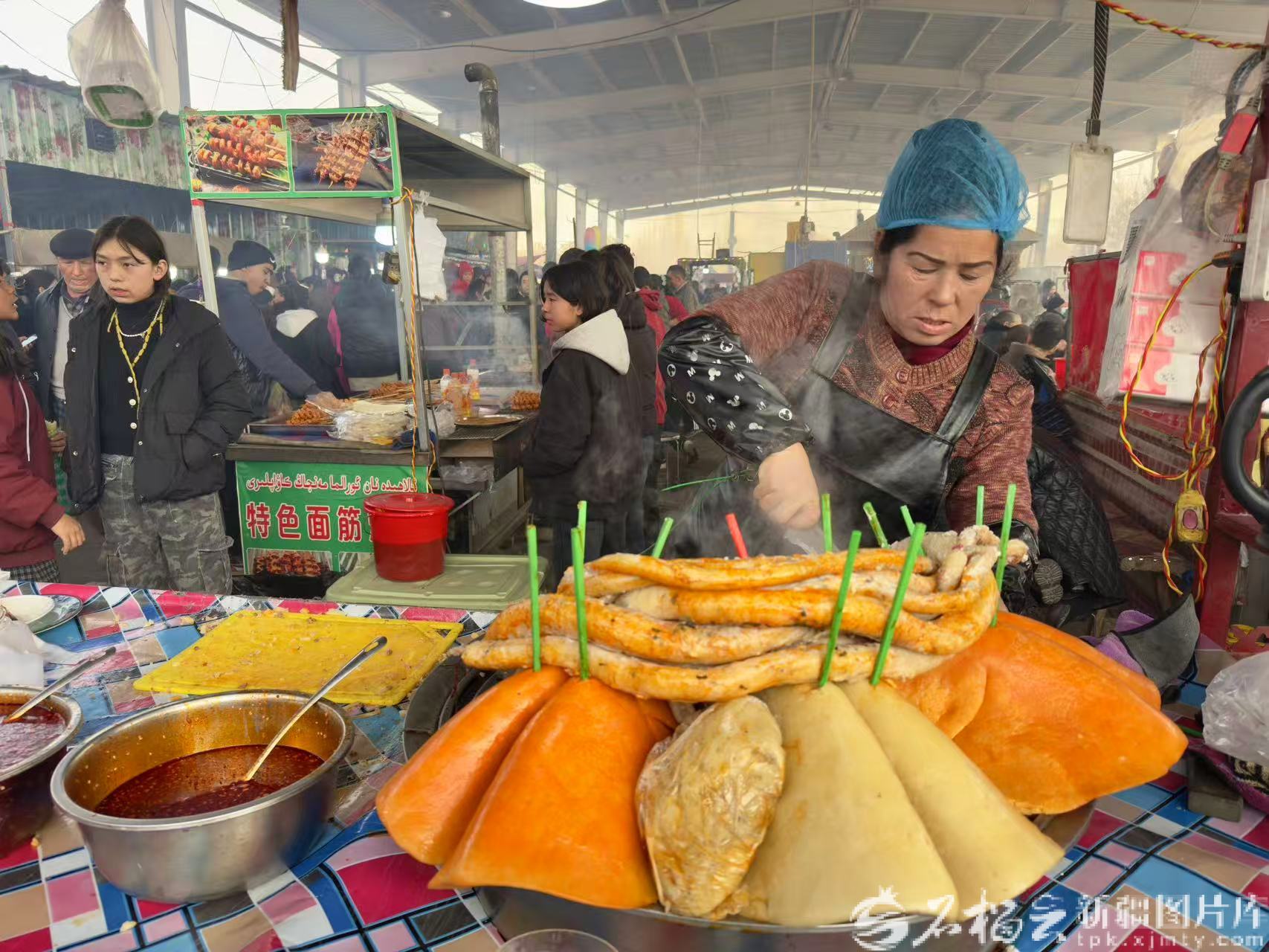 “我这儿只卖凉粉、凉皮,大碗5元、小碗3元。”阿依古丽手上不停,笑着介绍,“来逛巴扎,大家都要吃上一碗,有的赶早来垫垫肚子,有的逛完再解解馋。一个‘巴扎日’,能卖六七千元呢。”