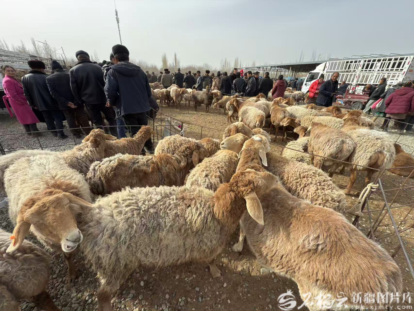 在活畜交易区,“咩咩咩”的羊叫声与“哞哞哞”的牛叫声此起彼伏。各族群众三五成群,有的拍着牛羊的脊背向来客夸赞品相,有的时不时拍打对方手掌,相互比划着议价,热闹非凡。