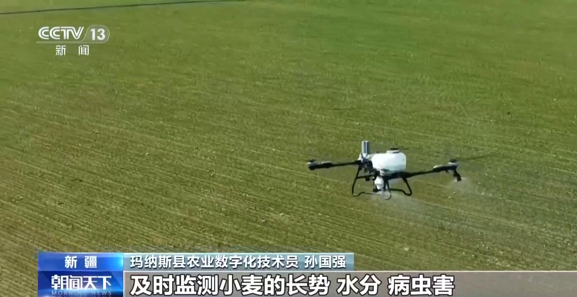 玛纳斯县农业数字化技术员 孙国强:我们通过数字农田大数据平台及时监测小麦的长势、水分、病虫害,向农户提供精准的、科学的施肥方案。预防雪腐病,助力返青。